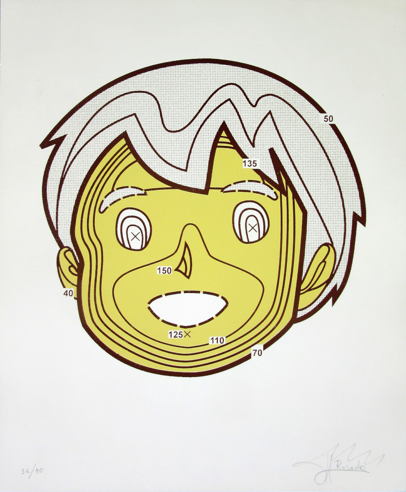 Serigrafía a dos tintas sobre papel creysse 300 gramos. Realizada en el taller Tinta y Mina para Contemporánea. Edición de 60 ejemplares numerados y firmados por el autor. Esta obra ha sido expuesta en la exposición Ficciones en serie dentro del Festival SOS 4.8 2013 (Murcia) y en la Mustang Art Gallery de Elche.